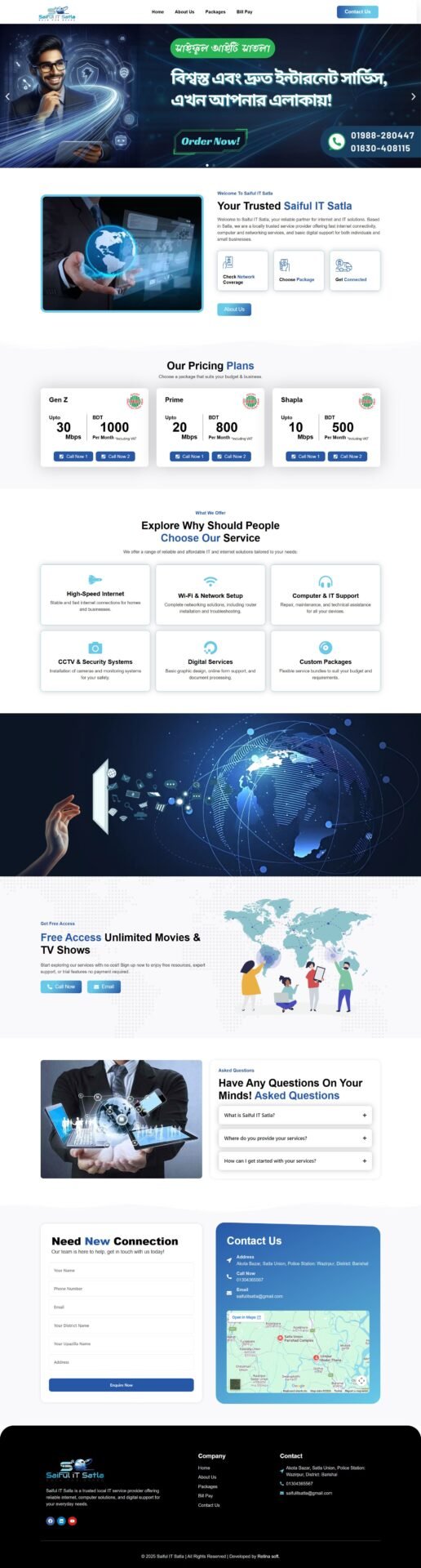 I developed a modern and professional WordPress website for Saiful IT Satla, a growing digital marketing and IT service provider based in Bangladesh. Built using Elementor, the website features a clean and engaging design to effectively present their services, including branding strategy, social media design, landing page creation, and SEO-focused copywriting.